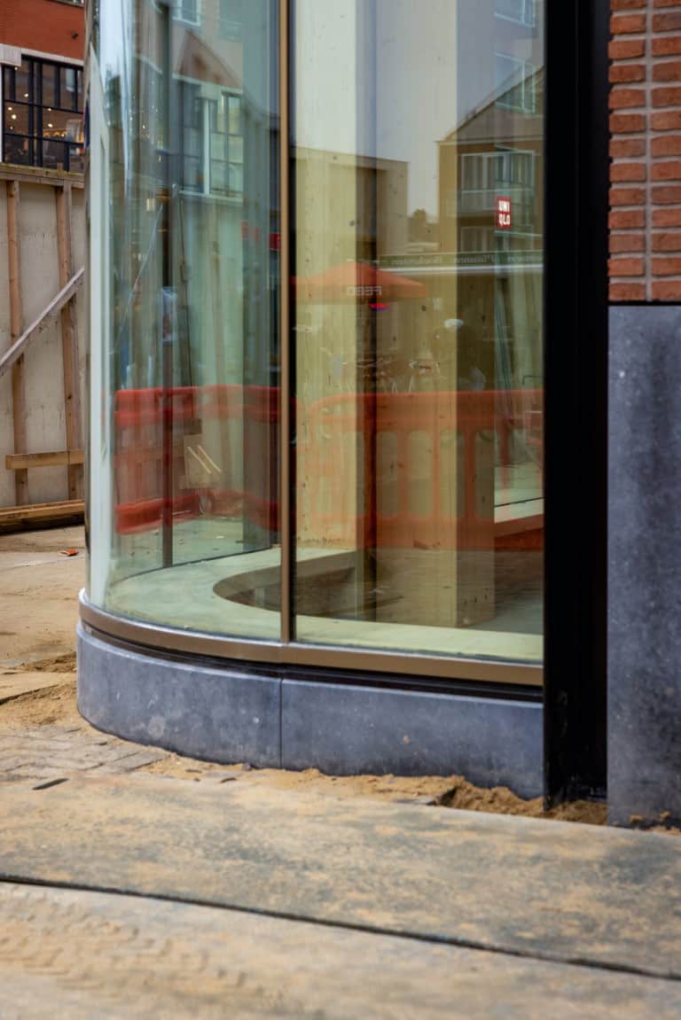 Indrukwekkend aan dit project zijn de grote ruitafmetingen in combinatie met de rond gebogen ruiten in de hoeken van de gevel. Met afmetingen van circa 2,22 meter breed en 6,27 meter hoog geven deze ruiten de entree een krachtige en transparante uitstraling. Ondanks deze indrukwekkende maatvoering blijft het doorzicht uitzonderlijk zuiver.
