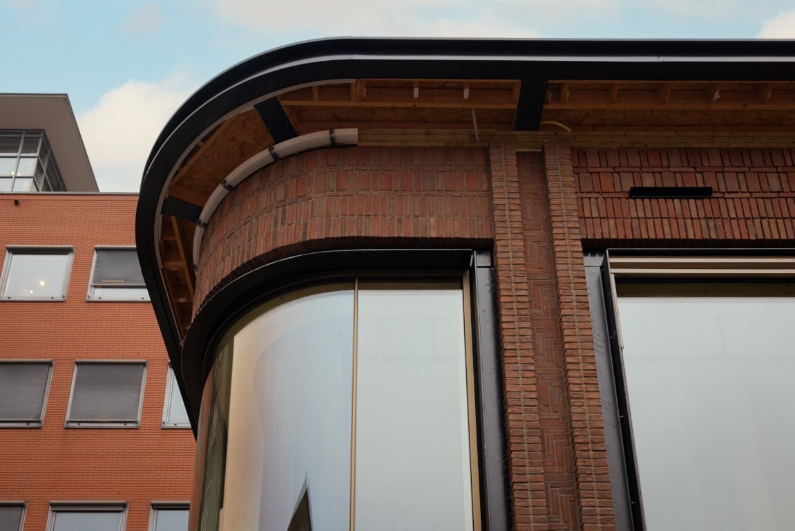 Voor dit project realiseerde Gevel Design Beek de aluminium vliesgevels met zowel rechte als rond gebogen ruiten. In totaal is circa 320 m² HR++ isolatieglas toegepast. De beglazing combineert een hoogwaardige uitstraling met sterke thermische prestaties en letselveiligheid.